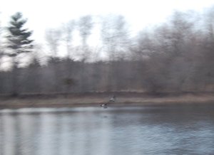 Wednesday morning the ice was gone, and I was able to capture the landing of two Canada geese. As I heard their honk in the distance, I readied myself to capture their flight and landing, hoping the pond was their destination. It always thrills me to see these landings. With much ado – honking and physical fanfare – they seem to tumble into a splashdown! Sometimes a dozen or so will land at once, leaving a wake of white water as they skid to a halt, following a canon-ball like splash. Ready as I was, the pictures are blurry. I forgot to set the camera for ‘sports action’. But, I think the blur adds to the comical event these landings are. Does it look as if there is a plan to the landing approach, or is it good luck tumble? Click on the pictures to view them in larger size. (Use your back arrow key to return to the post.) Soon, I hope to have perfected these action shots.
