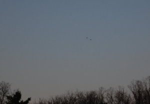 The day I thought to write the last post (which featured feathered friends, in two-by-twos, pursuing each other), just as I was about to head home after an evening walk, I heard two single engine planes overhead. Often I hear and see just one. But, that evening, two planes were engaged in a Snoopy v.s. The Red Baron game of, what appeared to be, chicken. I was dumbfounded to observe how close they would come to each other. One would cut the engine as the other gave full throttle acceleration, just as they appeared to me that they might actually collide. After ten or so minutes, of what I presumed to be non-FAA approved activity, one tailed the other off into the distance. Click on these photos to enlarge them.
