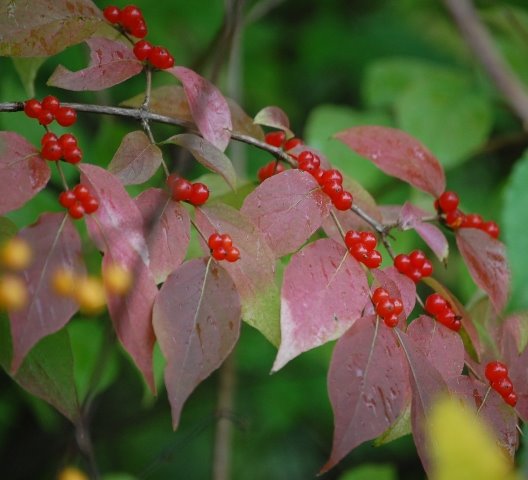 And, colorful berries crop up all around, like Peattie’s ‘encrusted with rubies and topaz’.