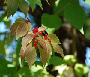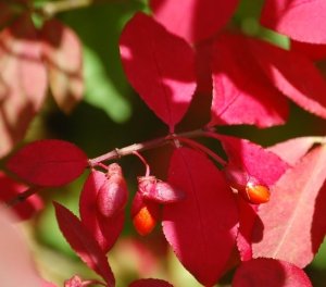 I’m not quite understanding berries. I thought they arrived in summer – kind of like fruit and in the form of such common things as the strawberry, blueberry, raspberry, and blackberry. But I have photos from all the seasons but winter that show berries of all varieties. I love to take pictures of them. Maybe there are fruit berries and blossom berries. Maybe what I show below is a blossom berry. In any event, to my eye, the color of the leaves competes with the red berries for attention.
