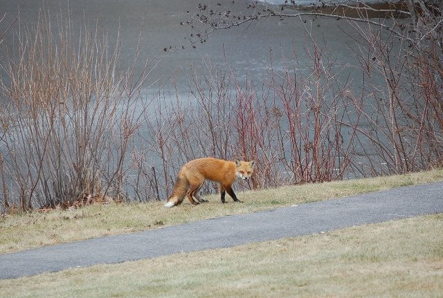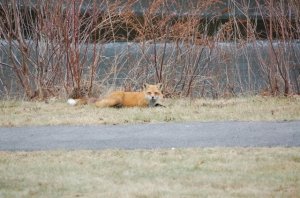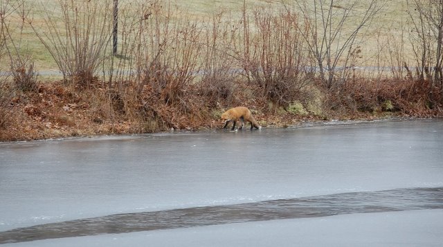 I was so intrigued by the pond groans that I walked its perimeter three times just so that I could continue to listen to it. In the final stretch, I spotted a Red Fox walking along the shore. Once before I’ve see a Red Fox at the pond. But this fox didn’t seem to mind the diminishing distance between us, as my dog and I came closer. And, as we were about 30 feet from it, it dropped to its belly. I was certain its posture was one of submission. Instantly I realized it was sick. Through red eyes nearly closed, it watched us pass at a cautious distance. Once we were beyond its pathway, it stood and slowly ambled on. I was so sad watching it, as I am sure it was going to its final resting place. And, as I walked home I hoped it would find a warm den to curl up and fall asleep for the last time.