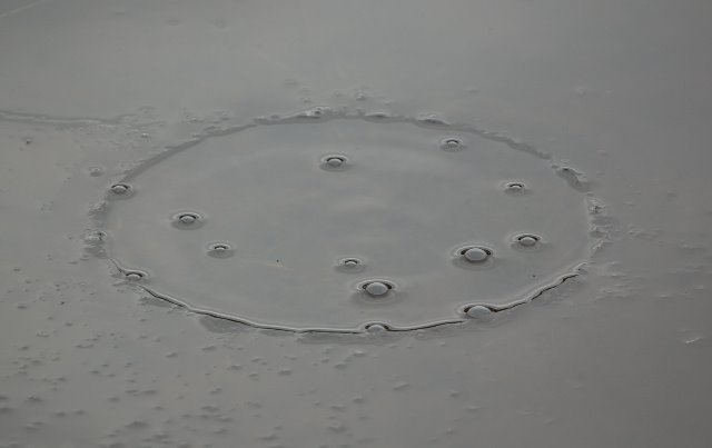 Still water showing bubbles.