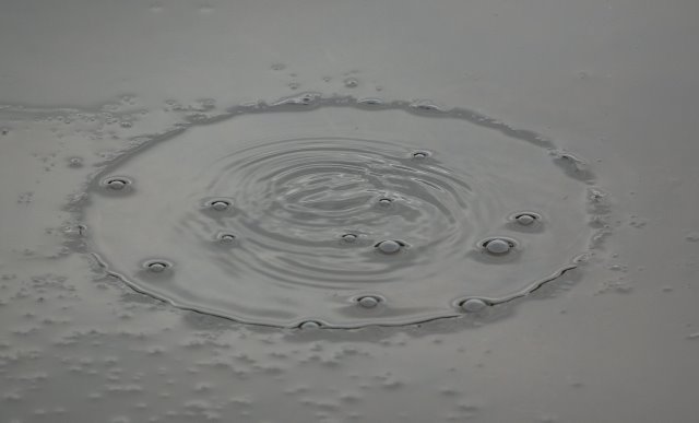 As I passed these circles, a moderate belch was given off by the pond. In the liquid, the waves of the sound were apparent! It was thrilling – so thrilling in fact that I found myself sharing my delight with a verbal outpouring to my dog, “Oh my gosh, can you see that?” Enjoy these picutures.