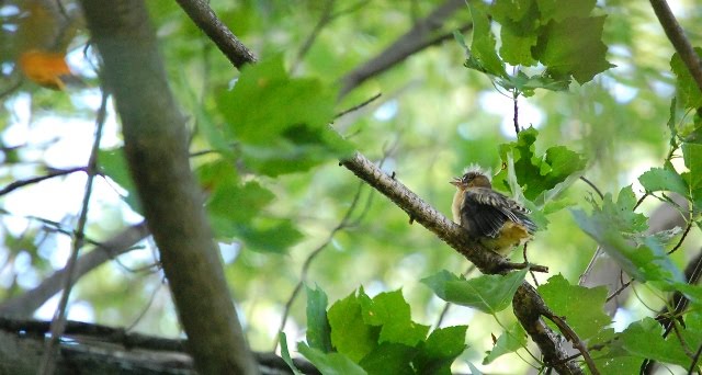 Between visits from its father it would hop from branch to close branch, sometimes with a little flutter of its wings.