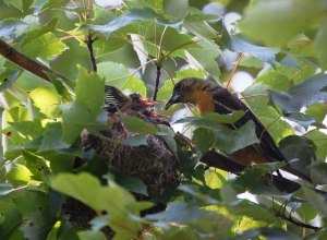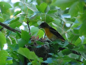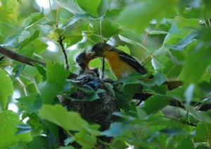 I’ve spent many hours during the last month taking pictures of two Baltimore Oriole nests. I’ve monitored the behaviors of the mother, the father, and the babies. I’ve learned a little and speculated a lot. And my psyche has been tweaked.