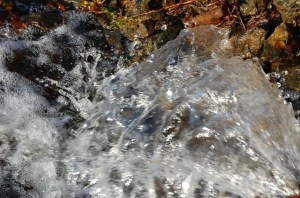 Spring is in full action as the snow continues to melt away and the thaw saturates the soil and water seeps and flows and floods in an urgent rush. The water above is coming into the pond from a stream.