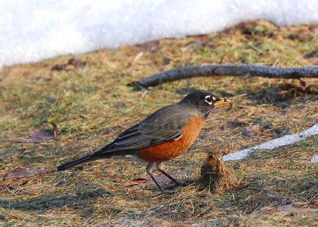 Some Native American tribes called the March moon “Worm Moon” because the ground softened and the worms wriggled their way to the surface – where a lucky American Robin might find a few for lunch, as the above photo, which I took this weekend, will attest.