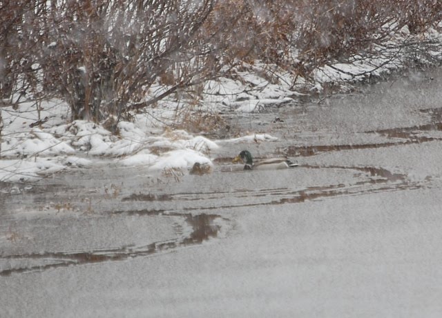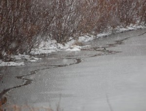 I was puzzled by the snake-like path (above) that weaved its way through the slush on top of the pond and along its edge.