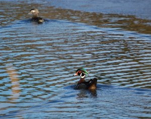 At the far end of the pond I was able to again get some photos but with the sun in front of me, the photos are not as clear. The photo above was the best I could get of the female. In my effort to do better with a picture of her, I walked one step too close and in a flash they were airborne. I’d scared them off, much to my sympathetic disappointment.