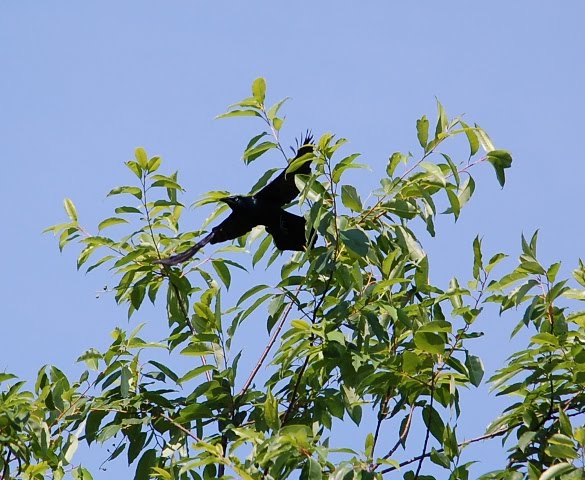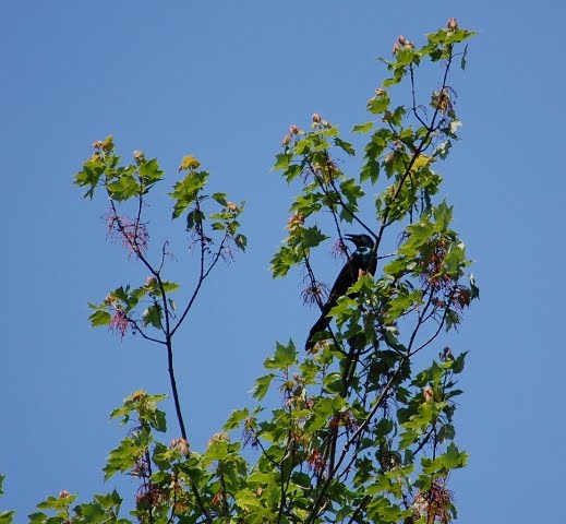 The common grackle is a menacing bird. It has a raucous call, an imposing look, and it perches at the tops of trees as if to declare itself king of the neighborhood. But it has a unique beauty in its iridescent hood of deep blue.