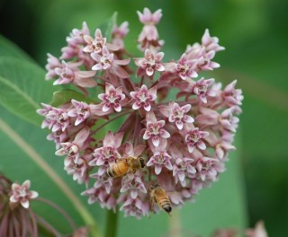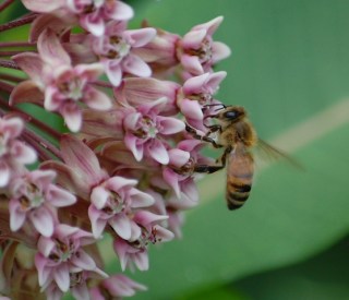 I could hear the hum of these frenetic bees as they swarmed around the common milkweed blossoms. I’m happy when the shutter times it just right and the bee’s tongue can be seen reaching for the pollen or nectar.