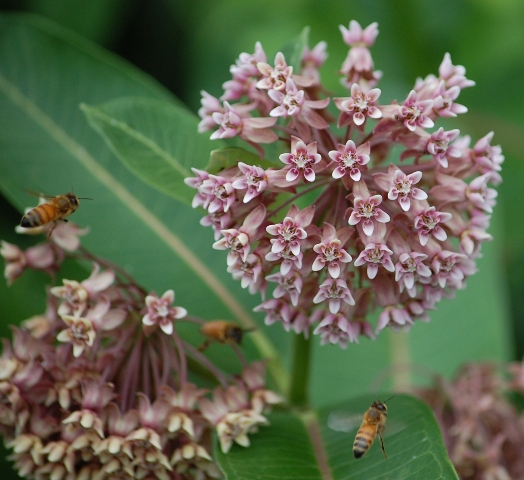 I could hear the hum of these frenetic bees as they swarmed around the common milkweed blossoms. I’m happy when the shutter times it just right and the bee’s tongue can be seen reaching for the pollen or nectar.