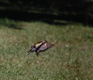 As one took to the air, a streak of yellow could be seen. And just beginning to show is the tell-tail large white blotch of the rear end which distinguishes this bird in flight.